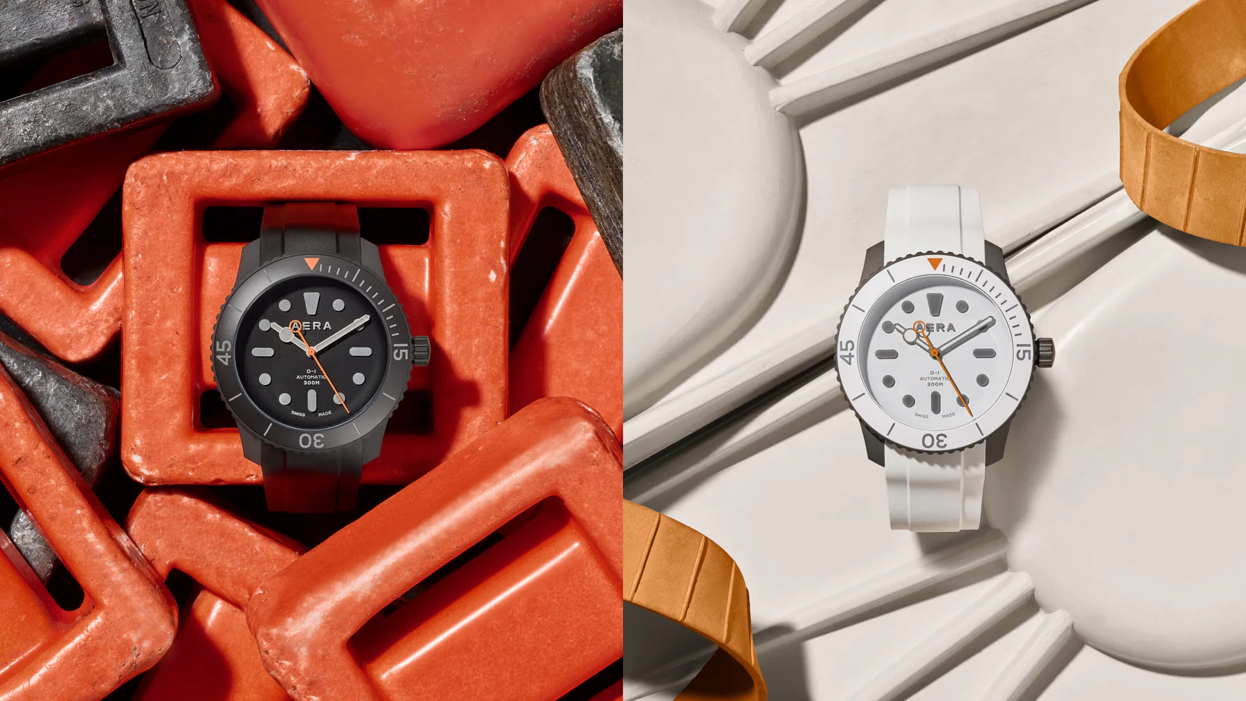 All Aera’s watch designs have a starting point in the golden ages of watchmaking. In the case of the D-1 Diver, that pivotal moment was the early 1950’s, when professional dive watches began to be worn by amateur sportsmen who needed rugged dive watches for new adrenaline sports like scuba diving. Just like the professionals who preceded them, divers needed watches that would both perform accurately and keep them safe underwater. The invention of unidirectional bezels to track dive time and oxygen use was the defining moment in dive watch design. But there’s another vital part to the codes that govern Aera watch design. From the outset a clean design language was essential. The D-1 had to be simple and easy to read, and thoroughly contemporary in inspiration. It is in that fusion of functional reliability and simple modern aesthetics that the D-1 derives its essence.
